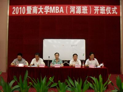 2010年6月11日,暨南大學(河源)MBA班在匯源集團多功能廳舉行開班儀式。市委龔佐林副書記、市人大黃晨光副主任、市政協(xié)具鐵祥副主席參加了開班儀式。據(jù)悉,此次MBA班226多名學員,來自河源市、縣非公企業(yè)、國有企業(yè)、金融系統(tǒng)。